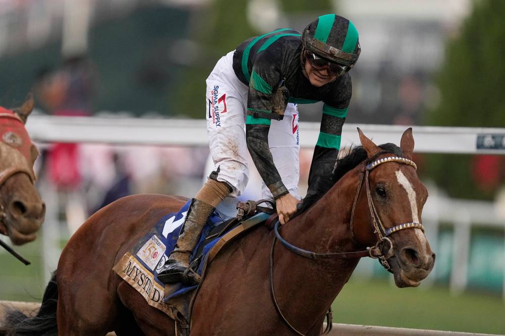 JEFF ROBERSON / ASSOCIATED PRESS FILES Jockey Brian Hernandez Jr. rides Mystik Dan across the finish line to win the 150th running of the Kentucky Derby horse race by a nose at Churchill Downs last Saturday in Louisville, Ky.