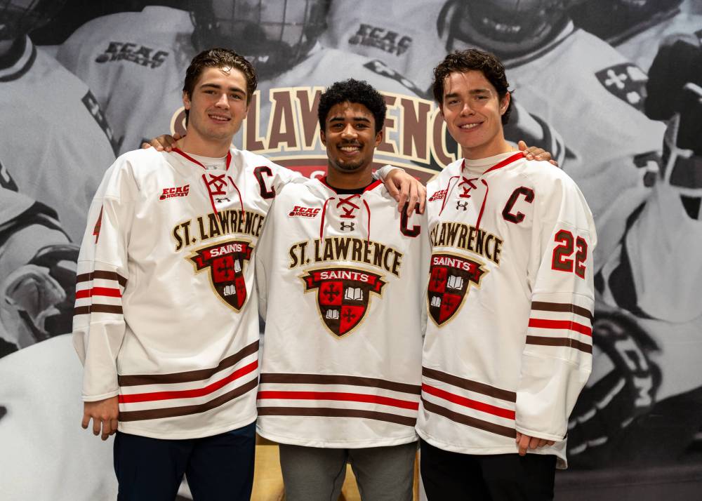 Winnipeggers Mason Waite (left), Drake Burgin and Ty Naaykens are co-captains of the St. Lawrence University Saints.