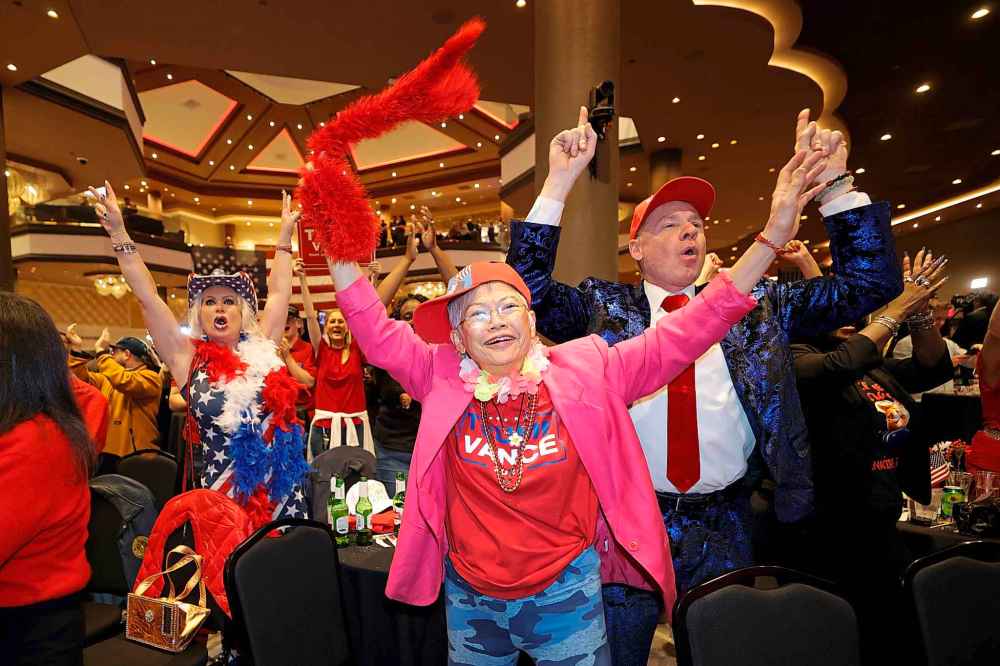 Supporters of Democratic presidential nominee Vice President Kamala Harris attend an election night campaign watch party Tuesday, Nov. 5, on the campus of Howard University in Washington. (Mark Schiefelbein / The Associated Press)Supporters watch as results come in at an election night campaign watch party for Democratic presidential nominee Vice-President Kamala Harris, Tuesday, Nov. 5, on the campus of Howard University in Washington. (Susan Walsh / The Associated Press)Supporters sit in the bleachers as people leave an election night campaign watch party for Democratic presidential nominee Vice President Kamala Harris after it was announced that she would not speak on Wednesday, Nov. 6, on the campus of Howard University in Washington. (Mark Schiefelbein / The Associated Press)The campus of Howard University is pictured after the conclusion of an election night campaign watch party for Democratic presidential nominee Vice-President Kamala Harris, Wednesday, Nov. 6, in Washington. (Susan Walsh / The Associated PressSupporters celebrate and take selfies during an election watch party for Republican U.S. Senate candidate Eric Hovde, Wednesday, Nov. 6, in Madison, Wis. (Morry Gash / The Associated Press)Republican presidential nominee former U.S. president Donald Trump speaks at an election night watch party Wednesday, Nov. 6, in West Palm Beach, Fla. (Jeff Roberson / The Associated Press)Supporters of Republican presidential nominee former U.S. president Donald Trump, Stephanie Smith, left, Sandi Steinbeck, center, and Thomas Brewer, right, cheer during a GOP election watch party at the Ahern Hotel, Tuesday, Nov. 5, in Las Vegas. (Steve Marcus / Las Vegas Sun / The Associated Press_Republican presidential nominee former President Donald Trump arrives at an election night watch party at the Palm Beach Convention Center, Wednesday, Nov. 6, in West Palm Beach, Fla. (Julia Demaree Nikhinson / The Associated Press)Republican presidential nominee former President Donald Trump, left, and his running mate Sen. JD Vance, R-Ohio, stand on stage at an election night watch party at the Palm Beach Convention Center, Wednesday, Nov. 6, in West Palm Beach, Fla. (Evan Vucci / The Associated Press)
