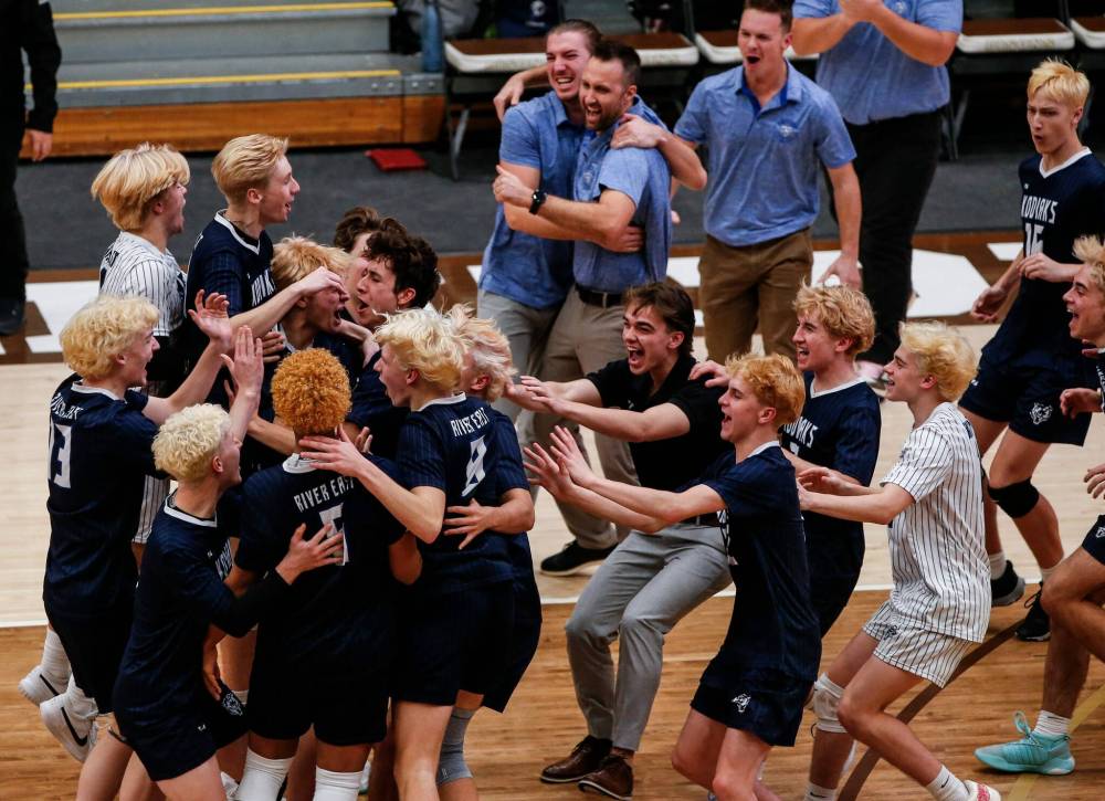 River East unleashed its balanced offensive attack with tournament MVP, setter Matthew Brown, at the controls.