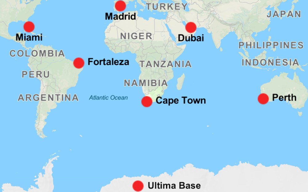 The first race will take place at Ultima Base on Friday. Stops in Cape Town, South Africa, Perth (Australia), Dubai (United Arab Emirates), Madrid (Spain) and Fortaleza (Brazil) will follow. By the time they cross their final finish line in Miami, Fla. on Feb. 6, the brothers will have run 295.4 kilometres.