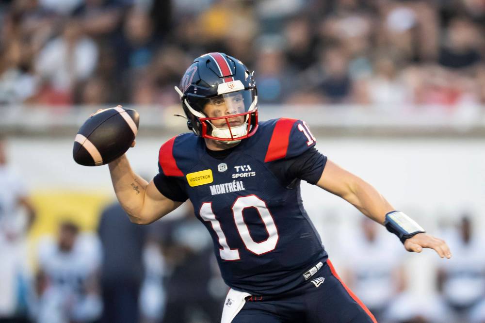 Christopher Katsarov / THE CANADIAN PRESS Alouettes quarterback Davis Alexander led Montreal to a dominant season-opening win against the Toronto Argonauts on Friday.