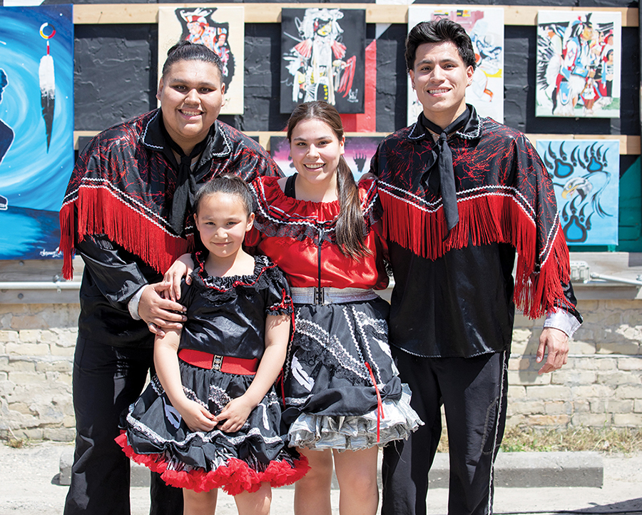 “Back in the day, it was considered a war dance by the government officials and the dance was actually banned in all of our communities — it was really tough to keep it alive,” says Harris, the oldest of the sibling dance trio the Ivan Flett Memorial Dancers (www.facebook.com/ifmdancers).