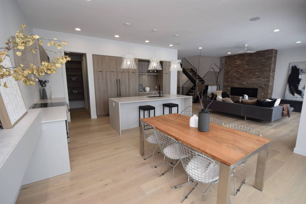 The kitchen and spacious dining area in Artista Homes’ luxurious 2,861-sq.-ft., two-storey Bison Run show home were made for entertaining.