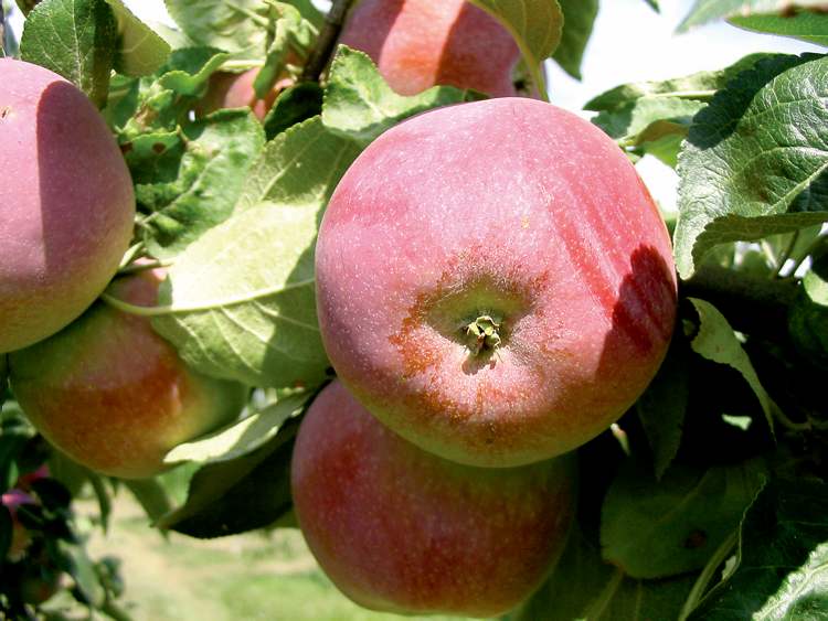 Among the smaller fruiting apples, consider Kerr Applecrab developed at the Morden Research Station in 1952. The tree offers strong, wide-angled branches and shows resistance to fire blight. The fruit matures in late September and offers intense flavour and colour for juice. Pick your fruit after several frosts and contact a local apple press for processing.