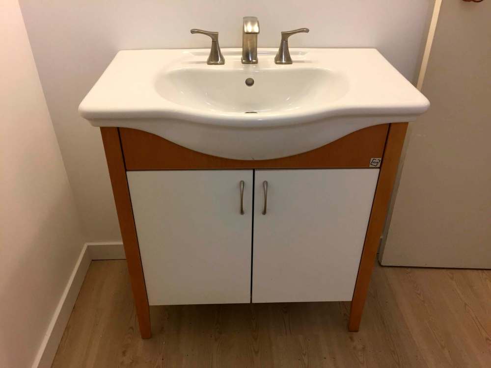 Replacing a bathroom sink and vanity, as well as the faucets, may seem fairly straightforward — and often it is. As part of the planning process, it is important to note whether or not the water feeds have shut-off valves. If they don’t, make sure you shut off the main water shut-off valve (usually located just prior to the water meter) before making any changes below the sink.
