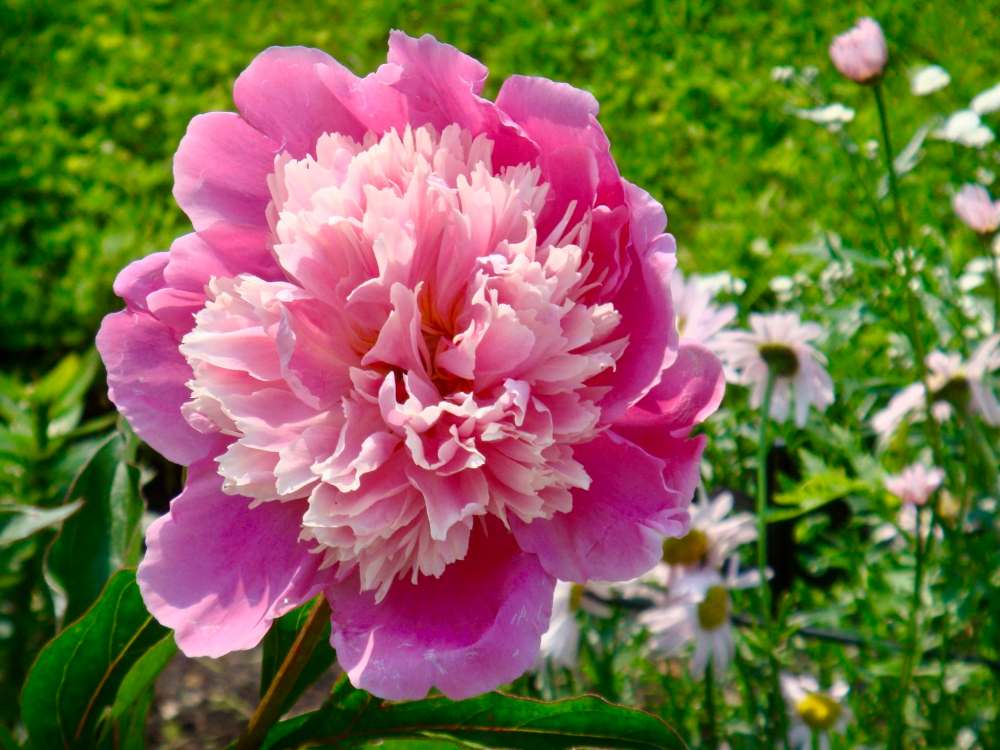 Geske grows Festiva Maxima in her Gimli garden as well. To support the huge, heavy blooms of Festiva Maxima, that has the same weak stems as the Sarah Bernhardt peony, Geske forgoes peony rings, which she says are too sharp and lightweight. Instead, she uses semicircular supports made of heavy-gauge steel. As the peonies move in the wind, the stems are supported by the grooves in the wavy edge, resulting in less breakage. The supports are available at Lee Valley Tools.