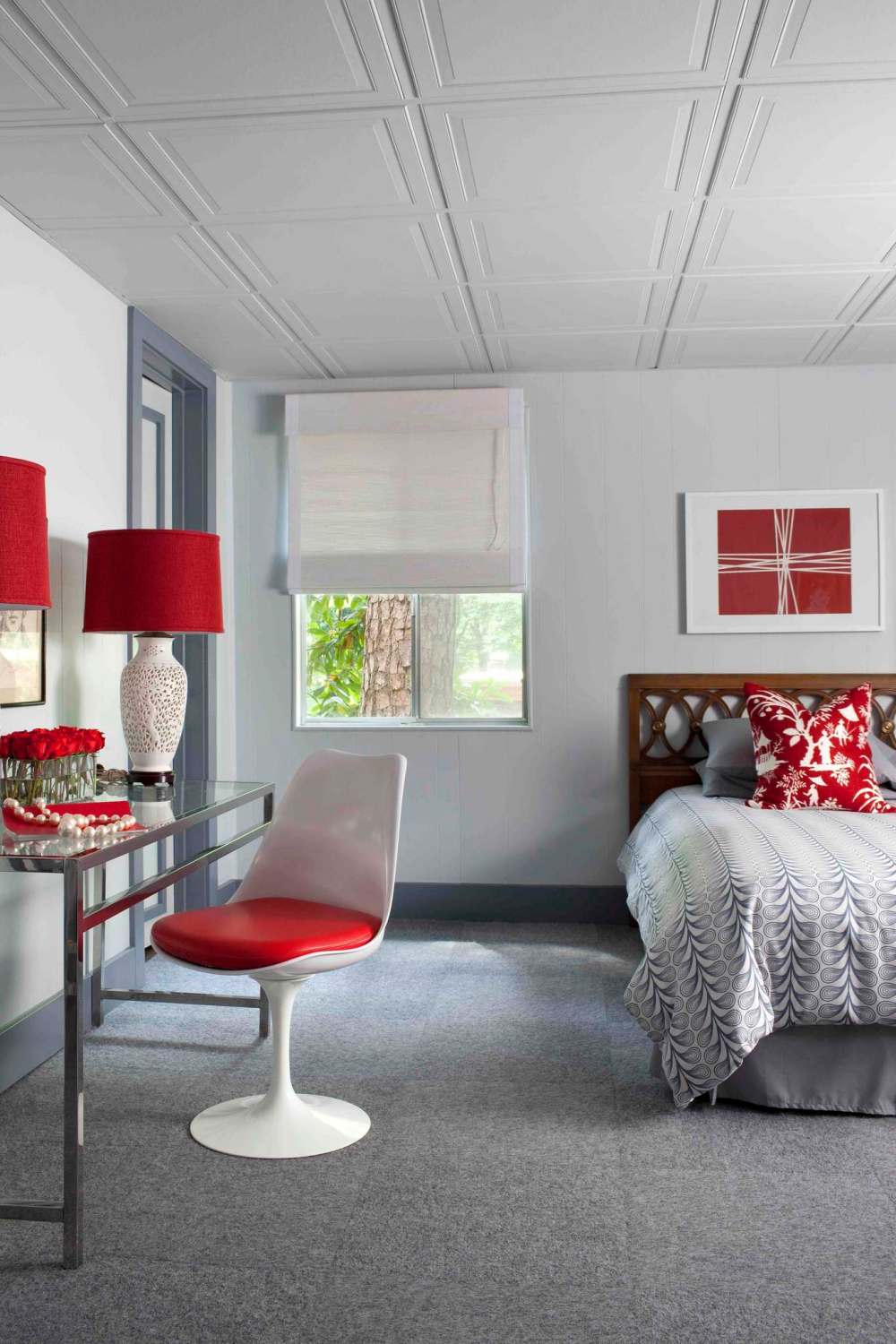 If the moisture issue is more extensive, causing most or all of the metal bars in the basement ceiling to rust, replacement will be more costly. The extent of the corrosion will likely determine how involved the repairs need to be. If only a portion of the ceiling T-bars are moderately or badly rusted, especially if it is limited to the hidden portion above the tiles, then complete replacement may not be warranted. If there is only a small amount of rust on the unpainted upper steel sections, then they may be fixable. They may never corrode enough to be a structural or esthetic concern, now that the source of moisture is gone. Tiny amounts of surface rust on the hidden portion of the metal bars may be removed with steel wool, sandpaper, or a grinder. If that works, coating the cleaned bars with rust-resistant paint may nip the problem right in the bud. There are several brands of spray paint in cans, available at any paint supply, hardware store or home centre, which claim to prevent rust reoccurrence. They are very easy to use, but care must be taken to cover the already painted portions of the T-bars, to prevent overspray from the new paint.