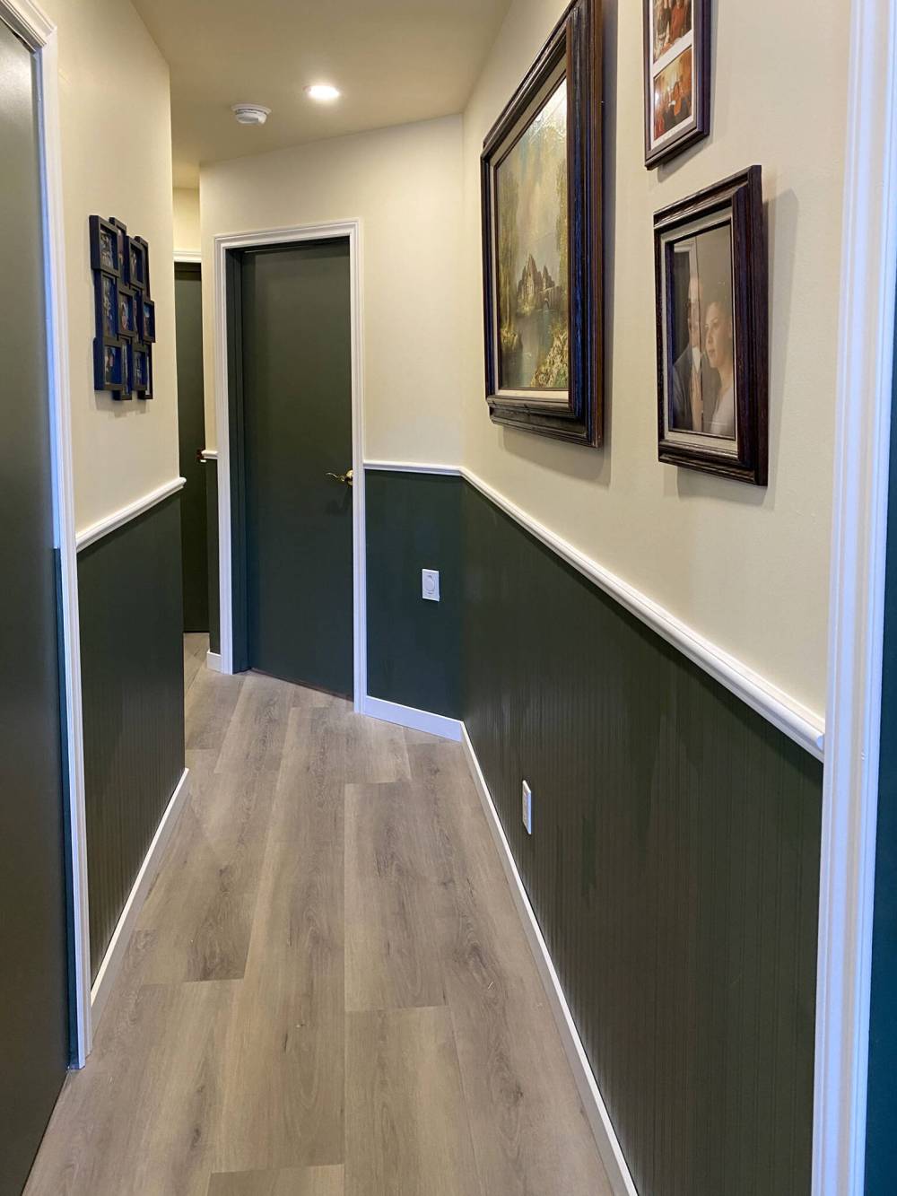 With the introduction of the new white baseboards, the hallway’s appearance seemed odd, and felt somewhat unfinished. I would have been remiss not to suggest to the homeowners that the entire array of trim throughout the hallway be updated to match the newly installed baseboards. After showing them a few examples, they agreed and the extra task was added to the project.