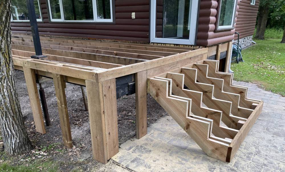 As such, the appropriate lumber adjustments were made to the existing framework. Lastly, both staircases were completely reframed using new treated lumber. This was the easier path, due to the picture-frame aspect of each stair, which again requires a specific layout of individual stair stringers.