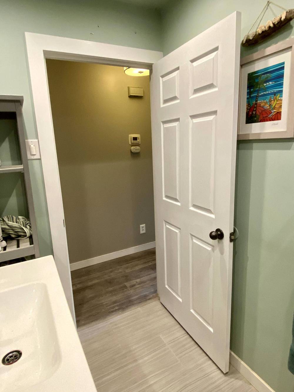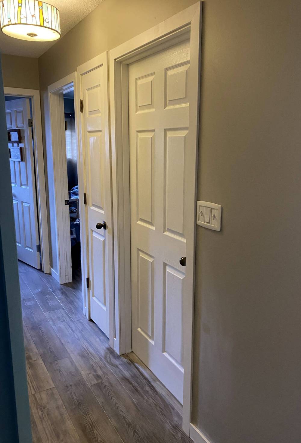 The new switch’s location in the hallway looks exactly as it had prior to door replacement.