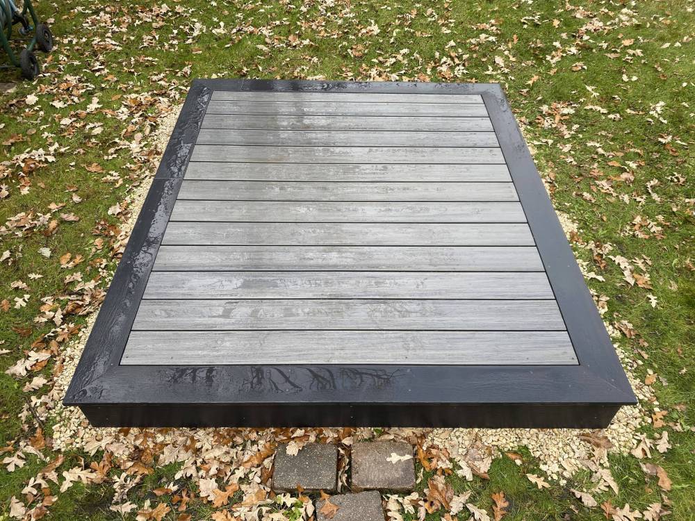After a few calculations, and once the homeowner confirmed the lengths of composite stacked behind the garage, it appeared there would be just enough material to decorate a small platform — essentially a tiny, ground-level deck.