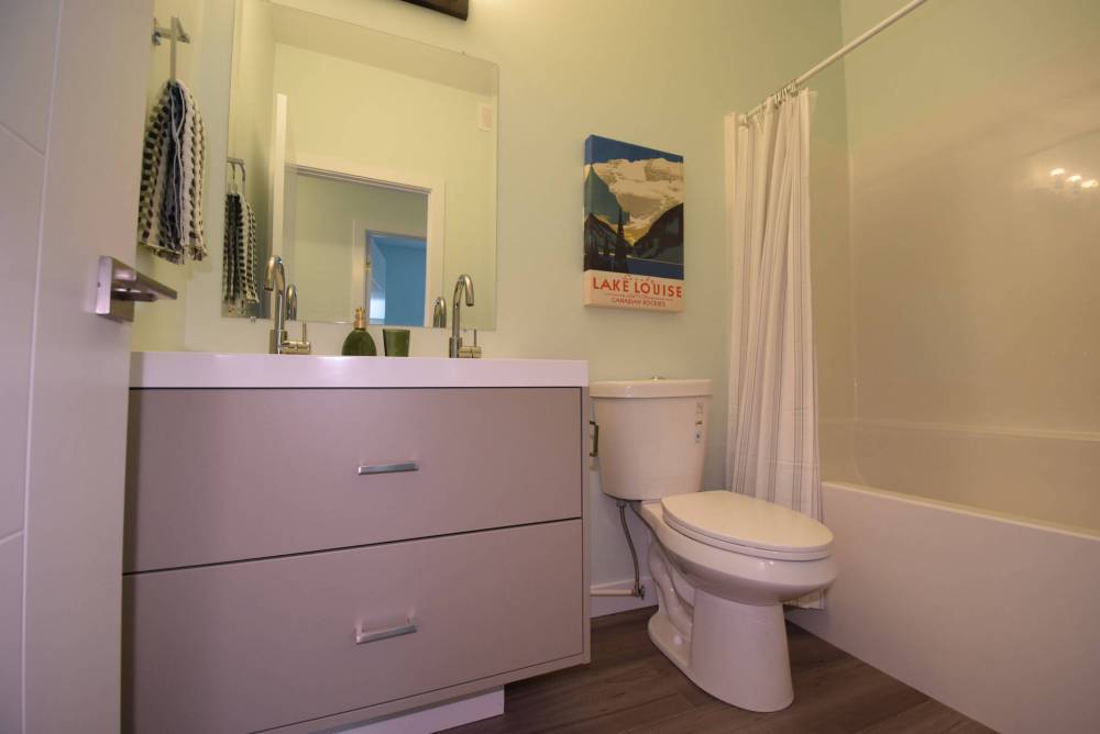 “This isn’t your ordinary infill home,” he says of the bi-level, which offers 1,062 sq. ft. of livable space on the main floor and 600-plus square-feet of livable area downstairs. “First of all, it was built on piles. Second, it comes with a structural-wood lower level. The construction is very solid from the ground on up.”