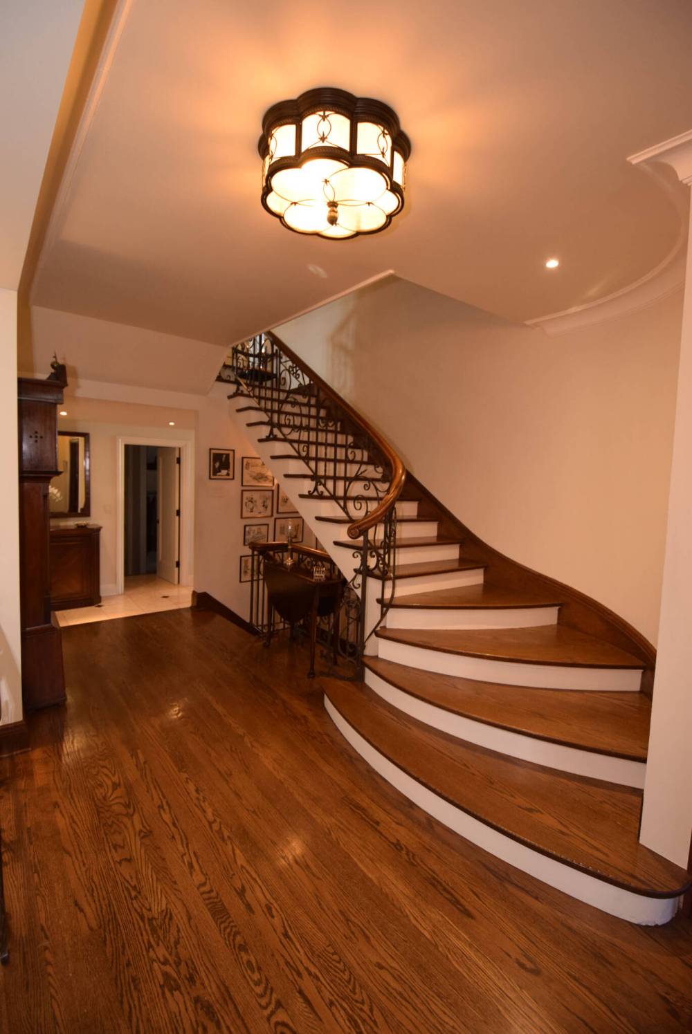 As happens in so many River Heights classics, a roomy foyer leads into a wide central hallway. And true to form, you’re greeted by a grand staircase with original oak steps and custom curved wooden railing that sweeps magnificently up to the second floor.