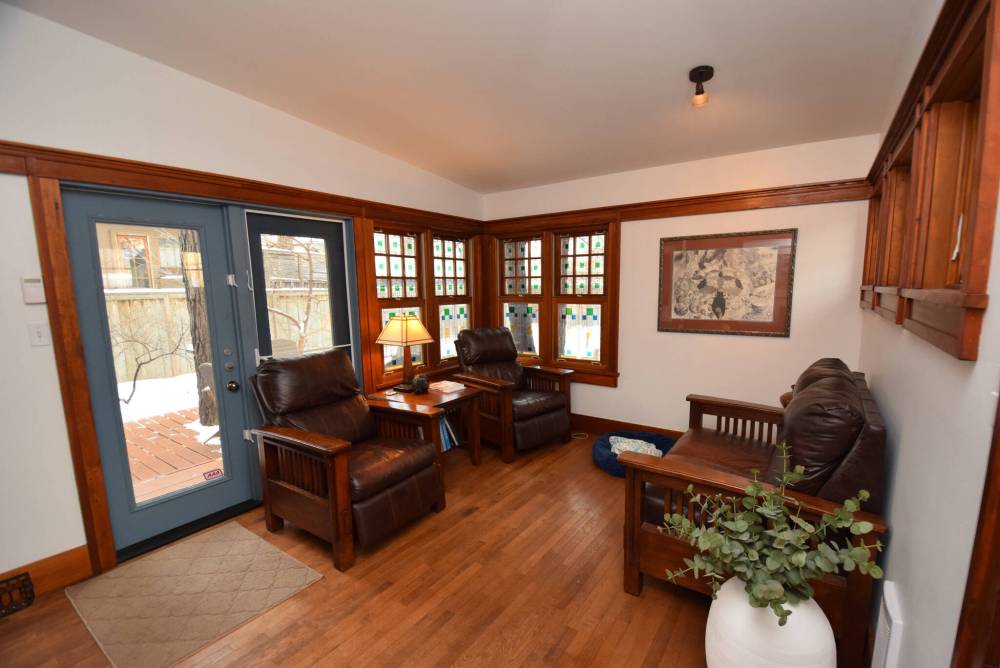 The main floor — which also holds a den, two bedrooms and an opulent main bath — is then completed by another special space to the rear of the kitchen: an enclosed three-season deck.