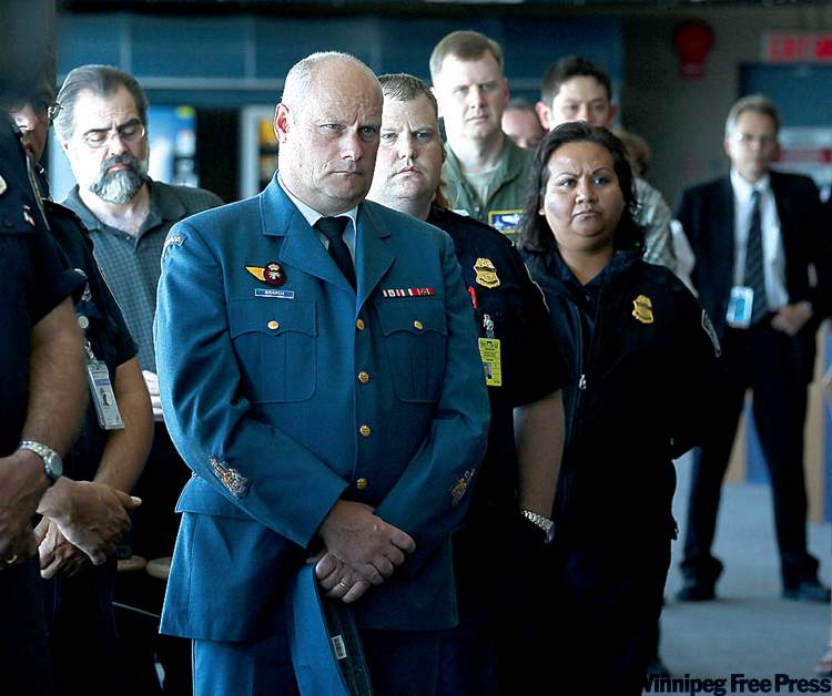 PHIL HOSSACK / WINNIPEG FREE PRESS Members of the air force and customs officials observe the ceremony.