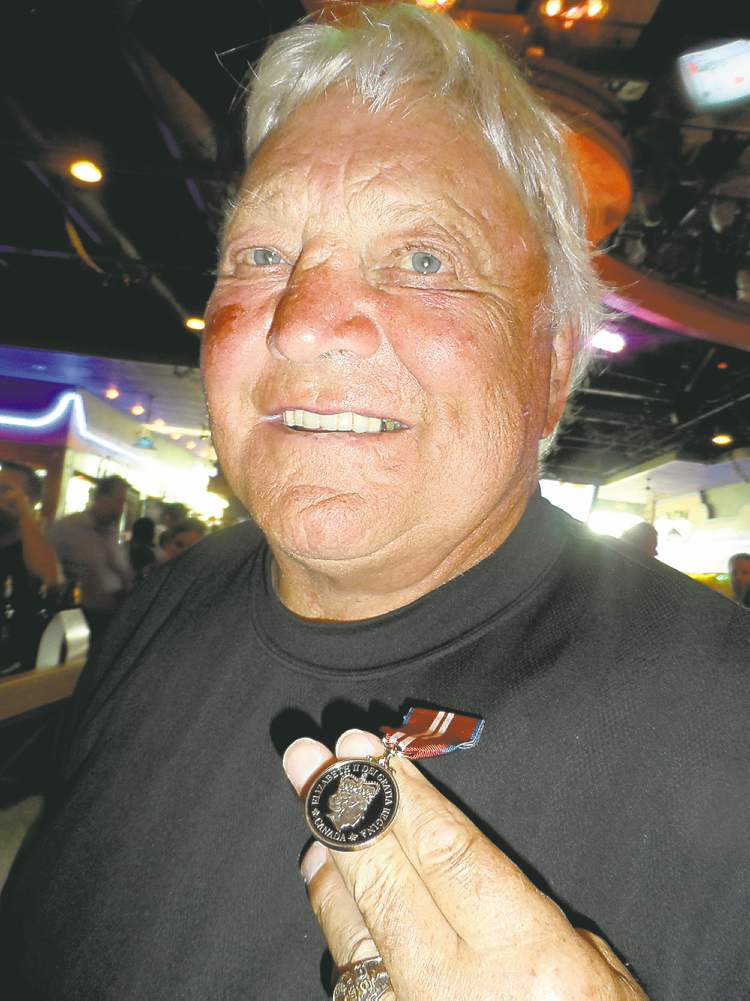 QUEEN SURPRISES HULL: Former Winnipeg Jet Bobby Hull couldn’t have been more surprised when they herded him onstage in his post-fishing clothes Wednesday night to accept a Diamond Jubilee Medal from Sen. Rod Zimmer, representing Queen Elizabeth II. It was an exciting moment at the sixth annual Steen Foundation Charity Auction at the Canad Inns Polo Park, preceding the big golf tournament Thursday at Glendale Golf and Country Club. Looking startled, Hull stood there in his navy T-shirt and fishing pants, receiving the medal. He finally took the mike and said, “I thank you from the bottom of my heart. Something always happens to me when I come to Winnipeg!”