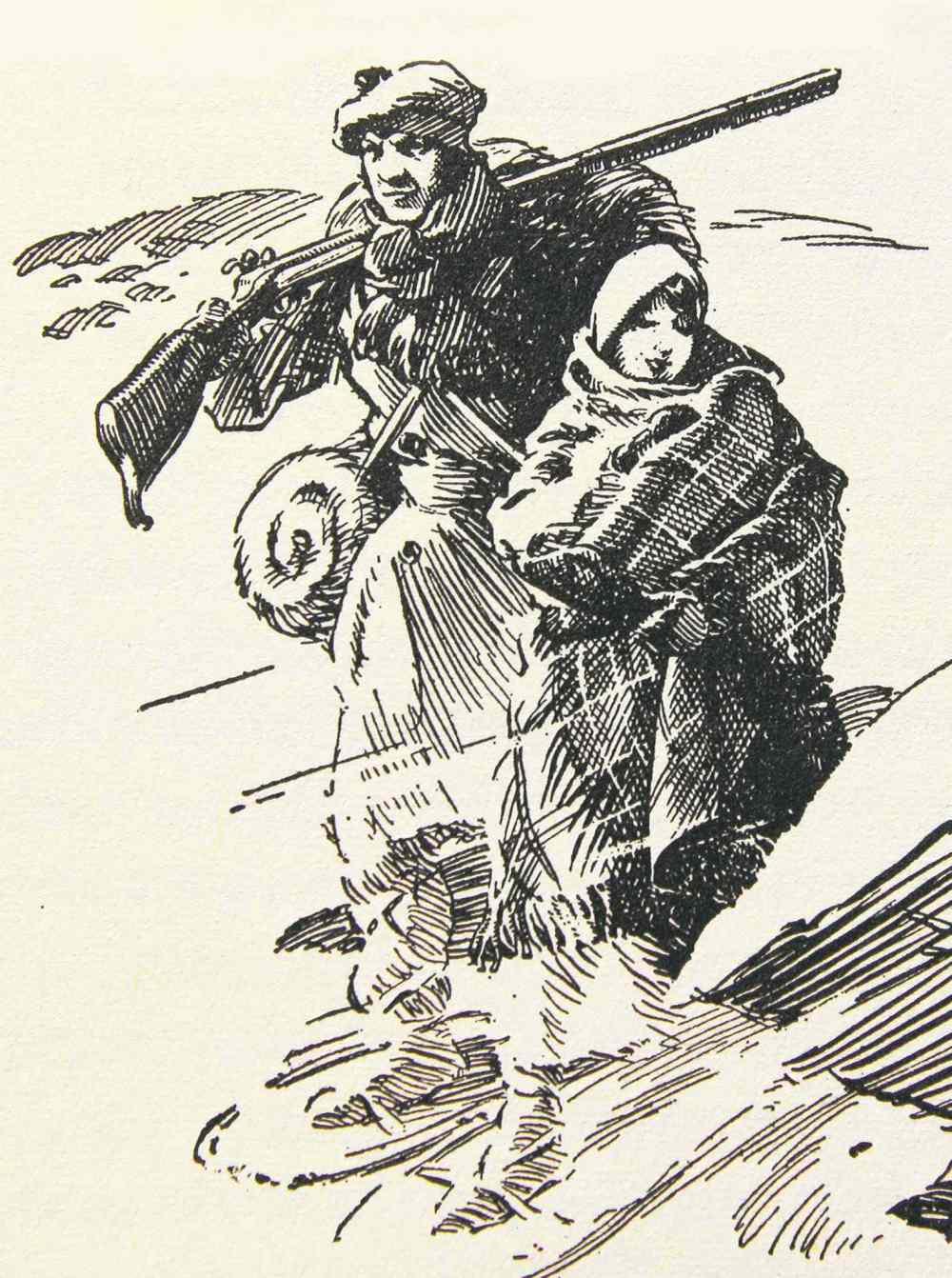 The ink sketch is haunting: A roughly clad Scottish Highlander and his young wife on snowshoes, trekking alone in swirling snow 200 years ago near Hudson Bay.