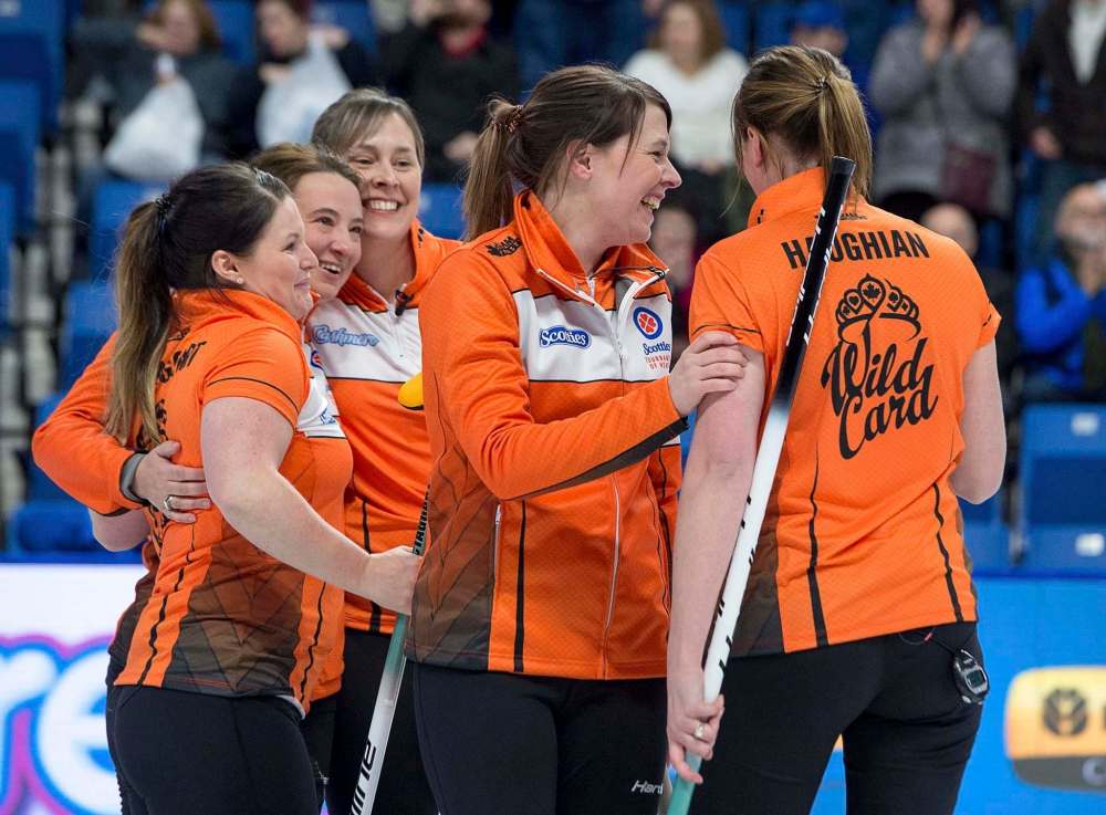Nowhere is the burst of colour more evident than in the wild-card uniforms. Dynasty made two colourways, one for each contender in Friday’s play-in game: a teal green, and a nearly radioactive bright orange. Kerri Einarson chose green, so the orange fell to Alberta’s Casey Scheidegger.