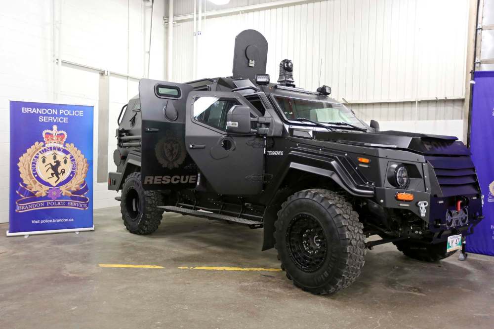 Brandon Police Service's new armoured response vehicle during the vehicle's unveiling at Assiniboine Community College's Public Safety Training Centre Thursday.