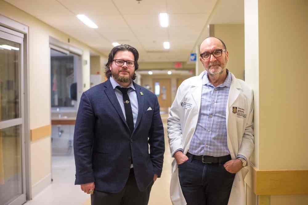 University of Manitoba researchers Alex Villafranca (left) and Eric Jacobsohn at the Asper Research Institute in Winnipeg. The two published their study findings that indicate disruptive behaviour is happening all too often in operating rooms worldwide and that such behaviour can lead to unhappy staff, absenteeism and high turnover. (Mikaela MacKenzie / Winnipeg Free Press)