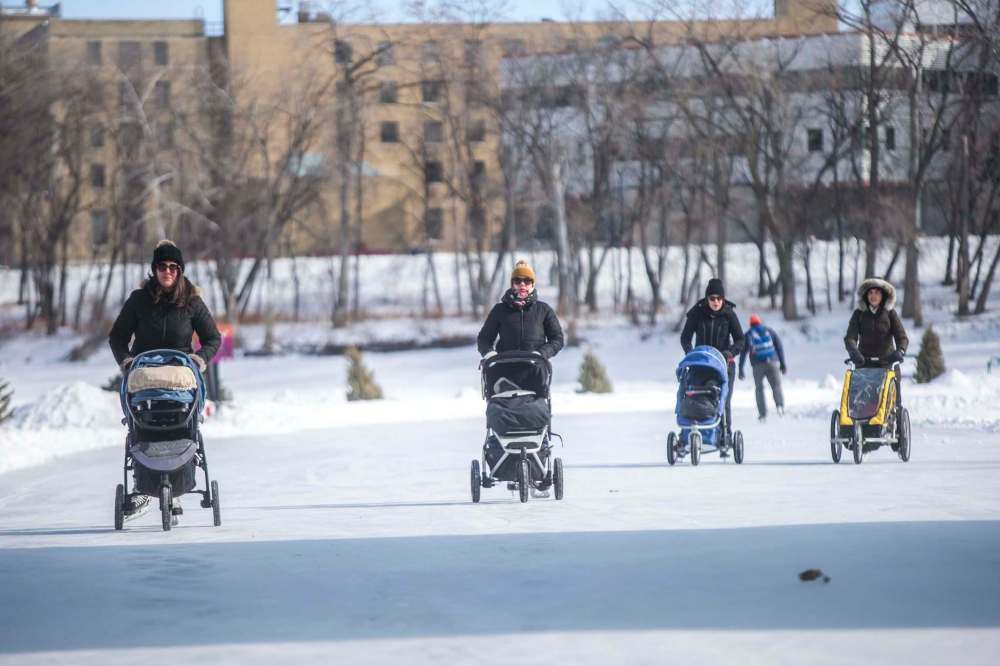MOMS in skates pushed strollers down the ice, friends skated in pairs and a few passed a puck to each other on the final day of a winter Winnipeg tradition.