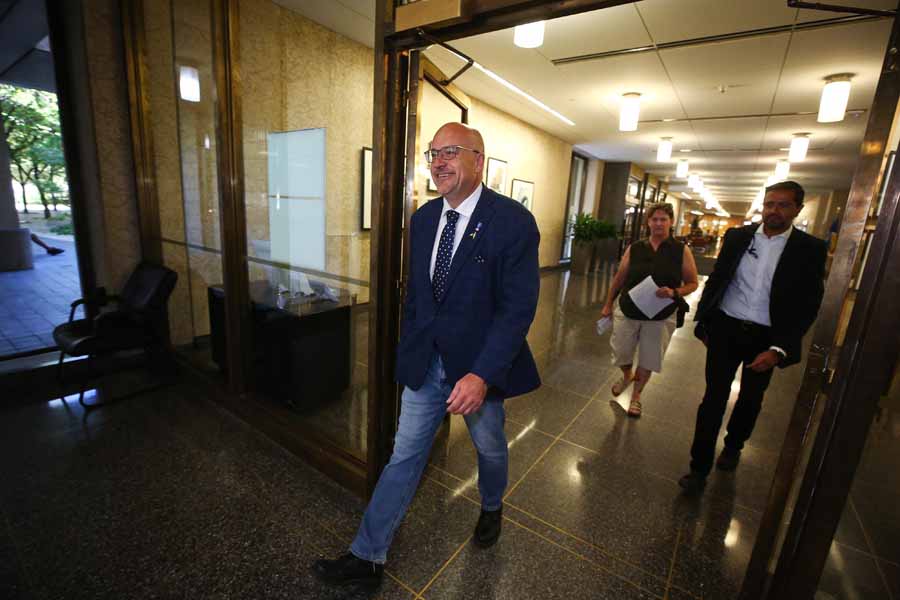 Former city councillor, Russ Wyatt, arrives at the clerks office to register as a candidate for the Transcona ward in the up coming civic elections.
