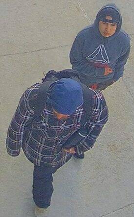 A woman exited a Winnipeg Transit bus and was followed by the two people pictured. The suspect in the top right corner of photo attacked the victim, pushing her to the ground and punching several times before stealing the victim’s bag and fleeing.