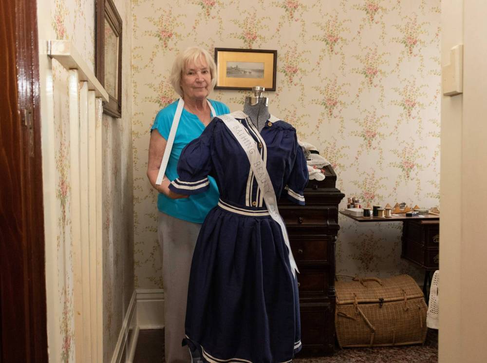 Jane Fudge volunteers weekly at the Dalnavert Musuem, where she sits on the board, gives tours and assists with research. Part of her work involves cataloguing new stock in the museum, such as this 1905 Miss Bathing Beauty bathing suit from Ireland.