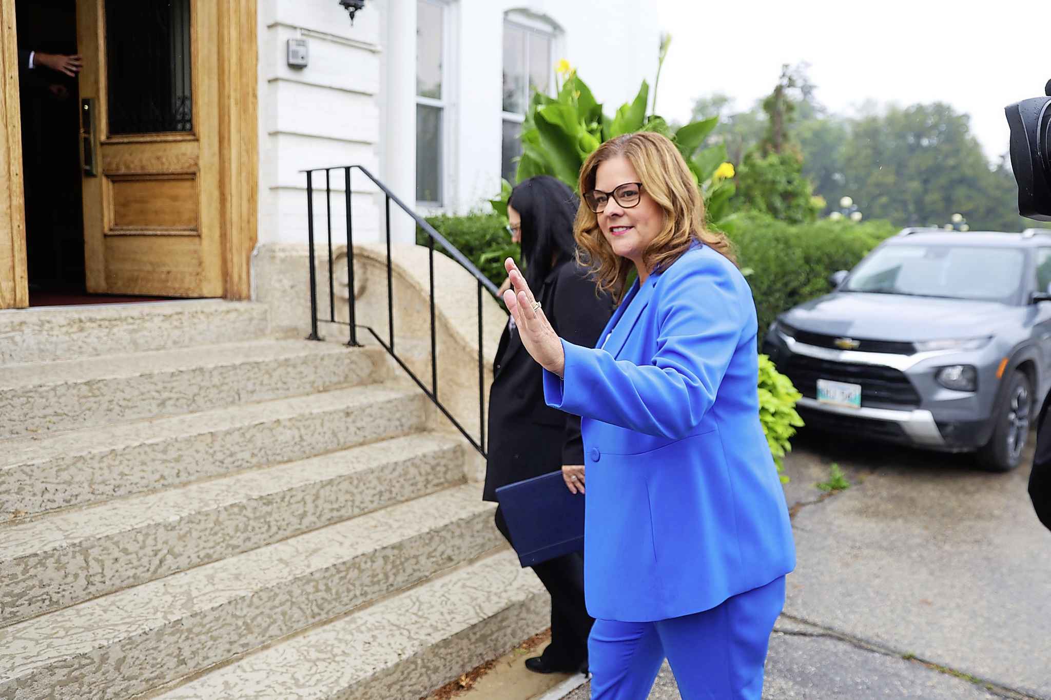 Leader of the Manitoba PC party, Heather Stefanson, heads to Government House to drop the writ to officially start the election campaign.