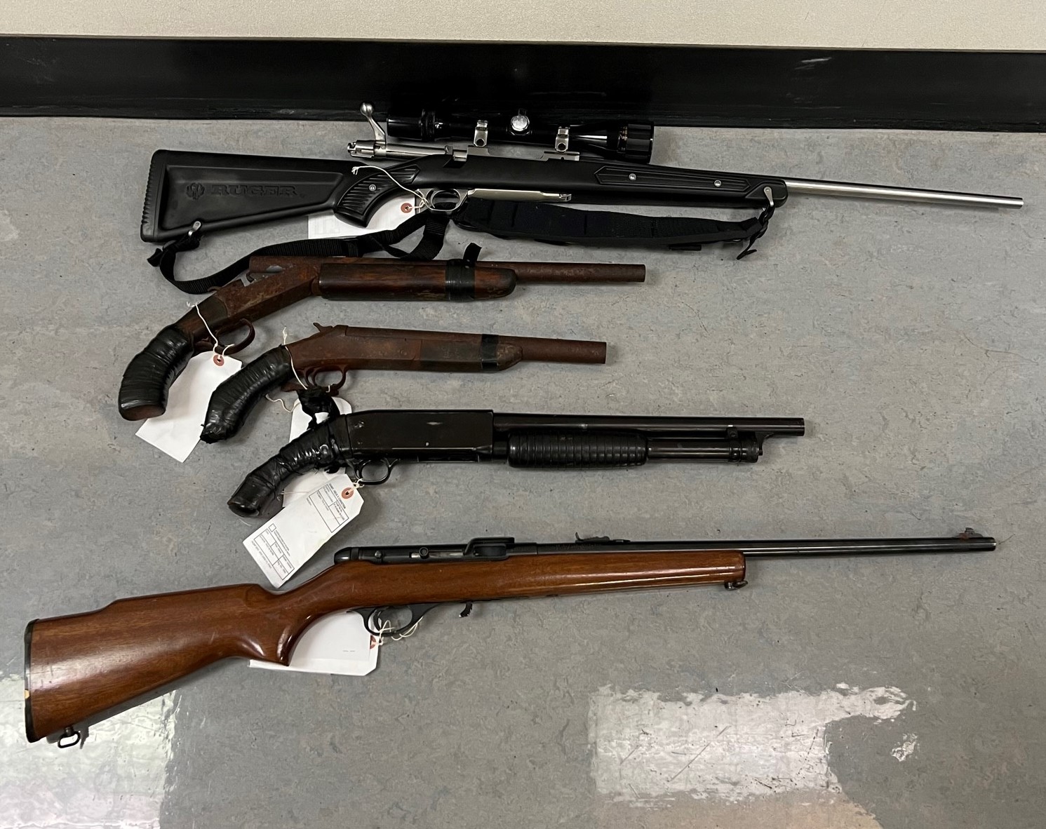 Three shotguns, two rifles and ammunition were seized from the apartments.