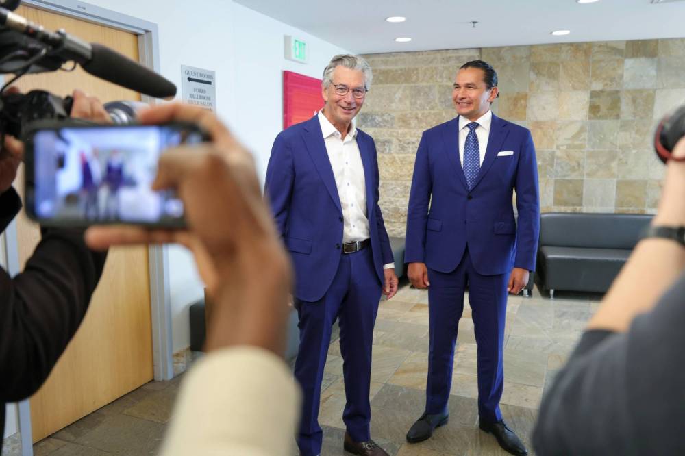 “I’m taking notes already from how he’s running this scrum,” Kinew said with a smile.