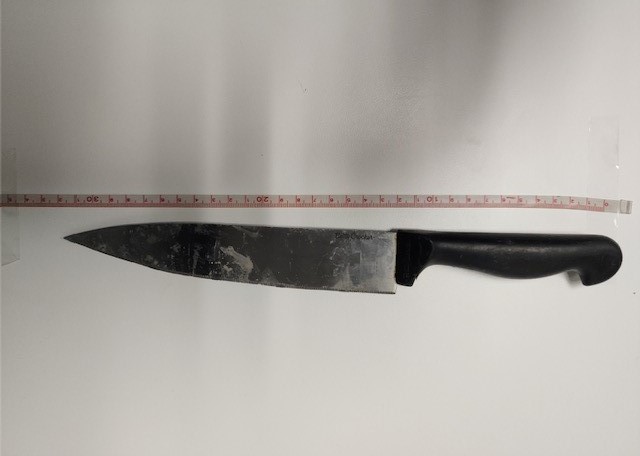 Upon their arrival, officers found the teen suspect standing outside the residence and told him to show officers his hands. The suspect refused and pulled out what Mounties describe as a large knife.
