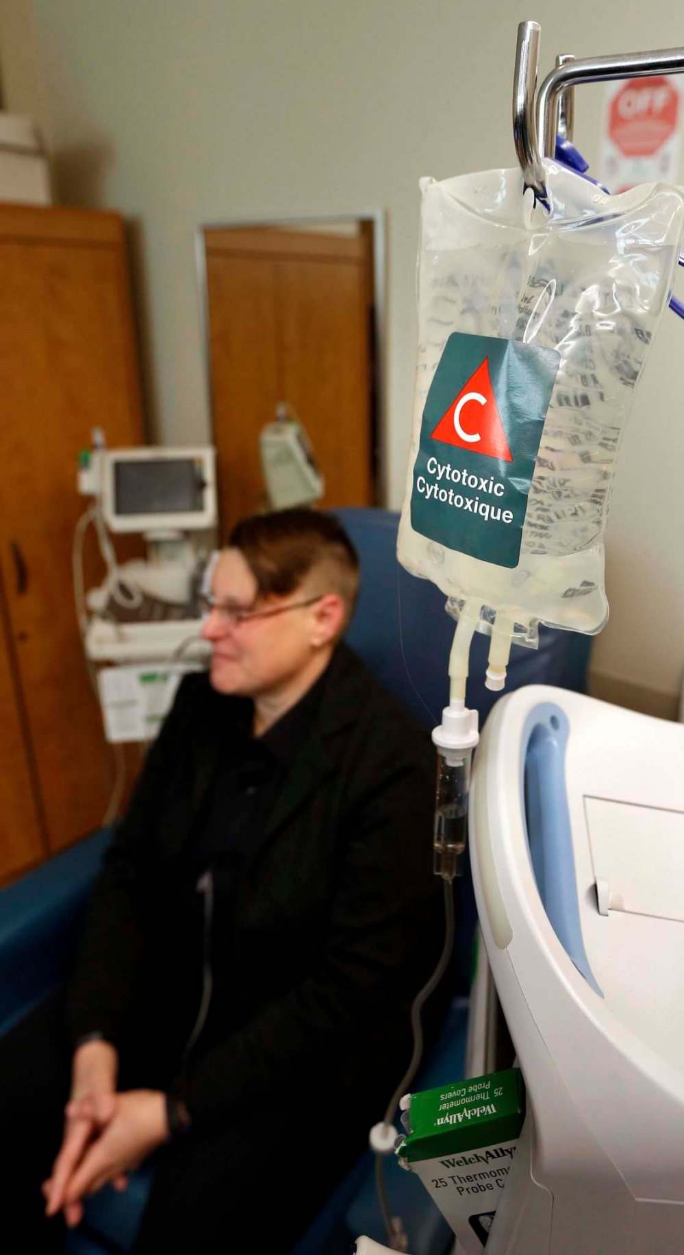 Next was what Babey called “the big, blue chair” — the seat where she receives chemotherapy every three weeks. Each session lasts about 90 minutes.