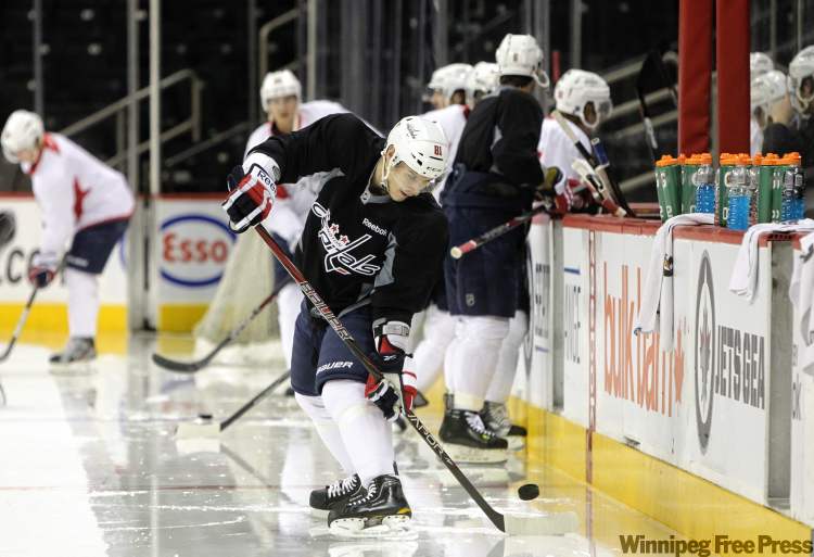 Mike Deal / Winnipeg Free Press Washington Capitals' Dmitry Orlov (81) during pre-game practice at MTS Centre.