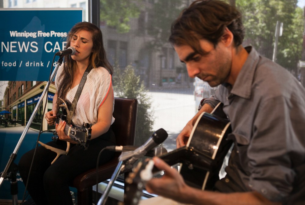 Snowblink, from Toronto, performed at the Winnipeg Free Press News Cafe on Thursday. They're in town performing at Folk Fest on Friday at 2:30 p.m on the Snowberry stage. 120605 - Tuesday, June 05, 2012 - Melissa Tait / Winnipeg Free PressMark Chipman, Chairman, True North and Governor, Winnipeg Jets, sits down for an interview with Hustler and Lawless during a live broadcast on TSN 1290 from the Winnipeg Free Press News Cafe, Thursday, June 28, 2012. (TREVOR HAGAN/WINNIPEG FREE PRESS)Vanessa Macrea at the Winnipeg Free Press News Cafe for Fringe Festival Promo Guide, Tuesday, May 1, 2012. (TREVOR HAGAN)