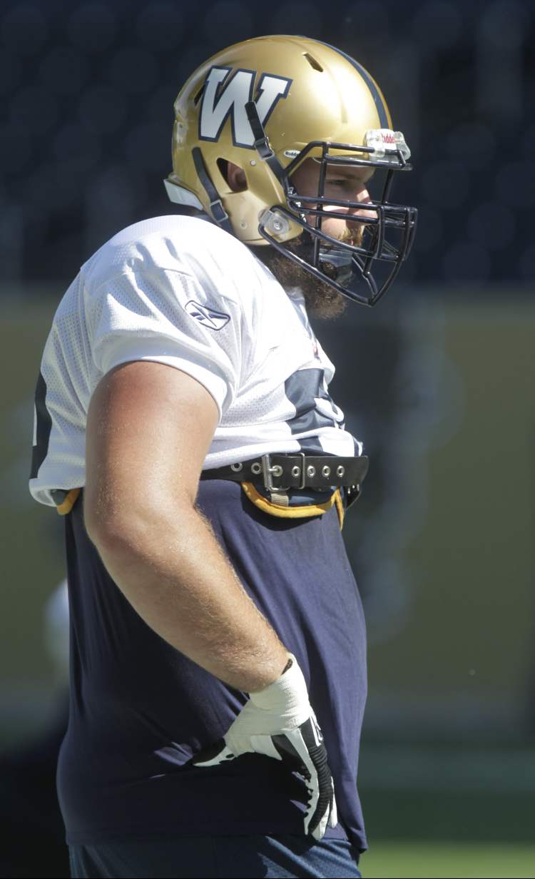 New Winnipeg Blue Bomber offensive linesman #56 Colt Schulte at practice on Investors Group Field Thursday. Wayne Glowacki / Winnipeg Free Press