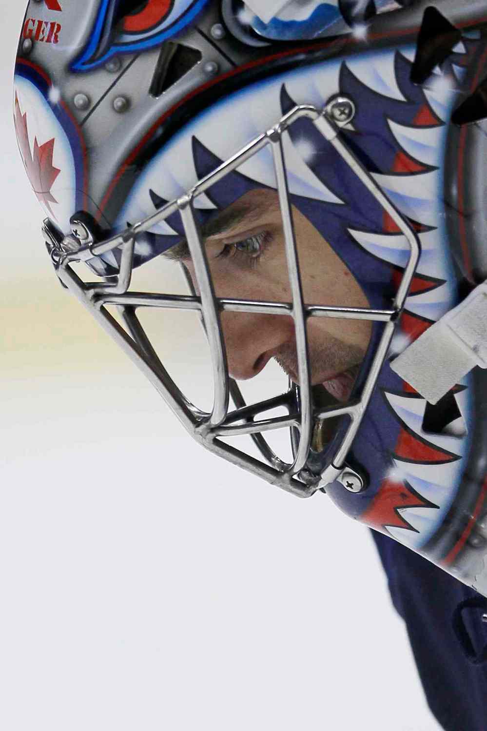 JOHN WOODS / WINNIPEG FREE PRESS Winnipeg goaltender Al Montoya during the pre-game.