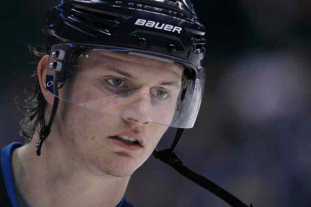 Winnipeg Jet Jacob Trouba warms up before the game against the New Jersey Devils at the MTS Centre.