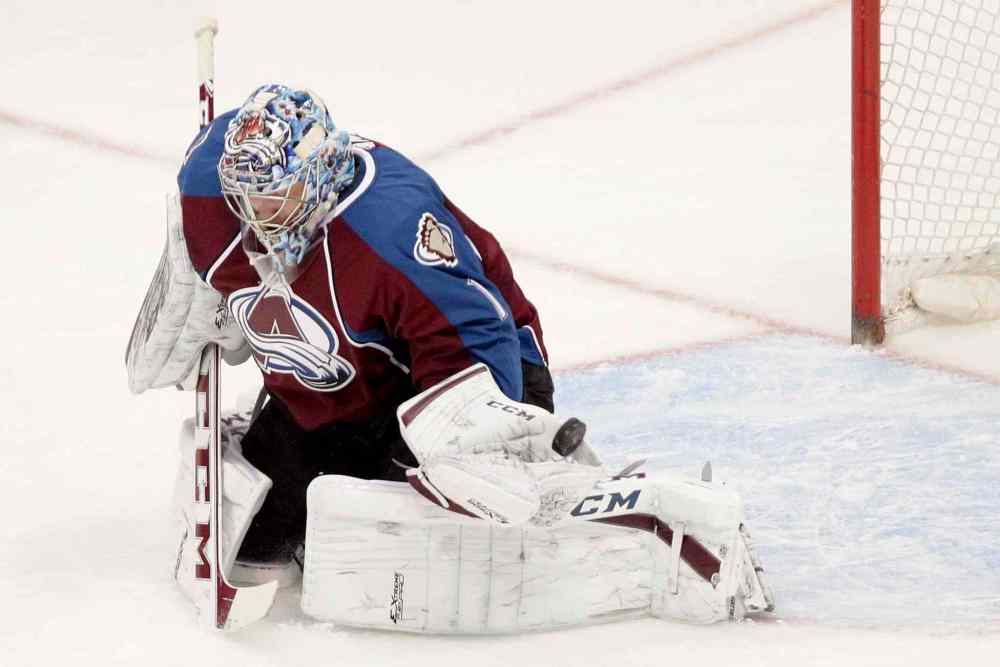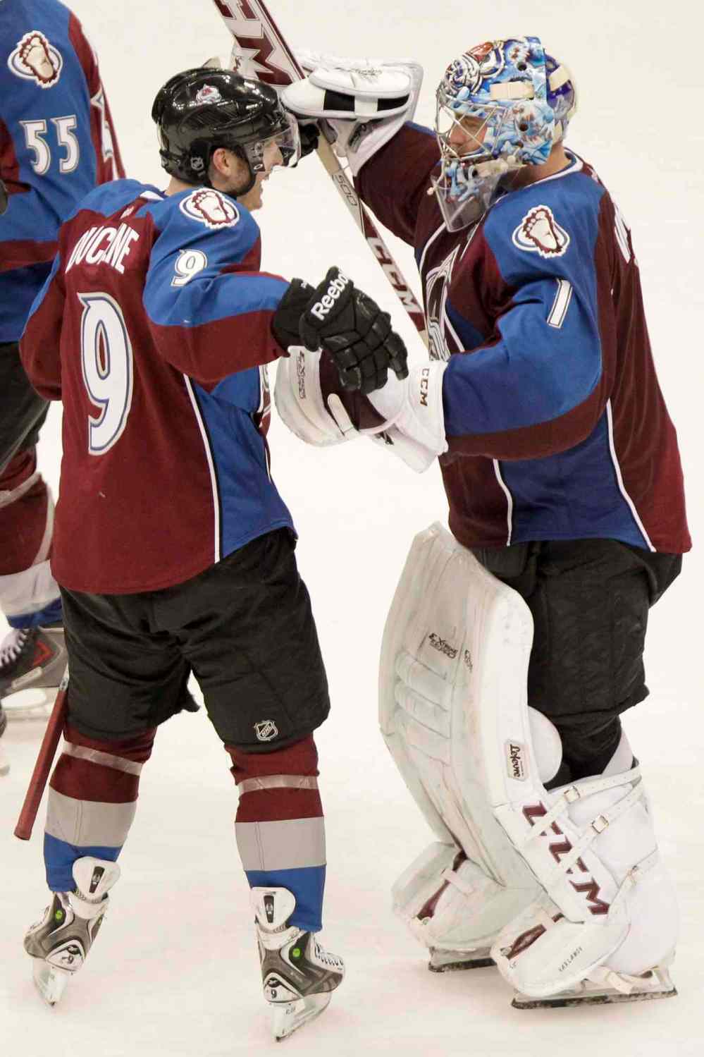 BARRY GUTIERREZ / THE ASSOCIATED PRESS Matt Duchene celebrates with goalie Semyon Varlamov after scoring the game-winning goal.