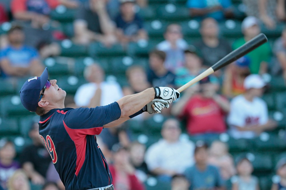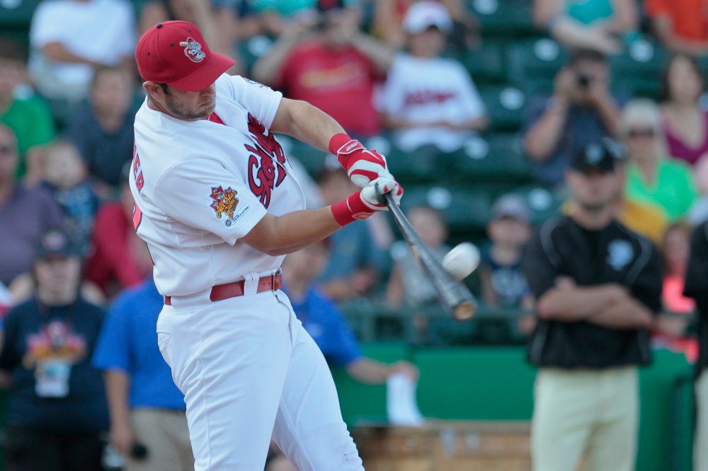 Casey Haerther of the Winnipeg Goldeyes during Monday's skills competition.