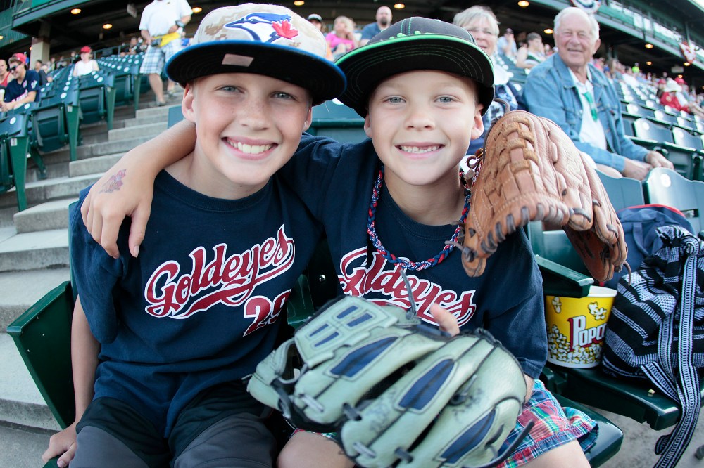 John Woods / WInnipeg Free Press Brothers Matthew and Nathan Brown hang out at Shaw Park during Monday's festivities.