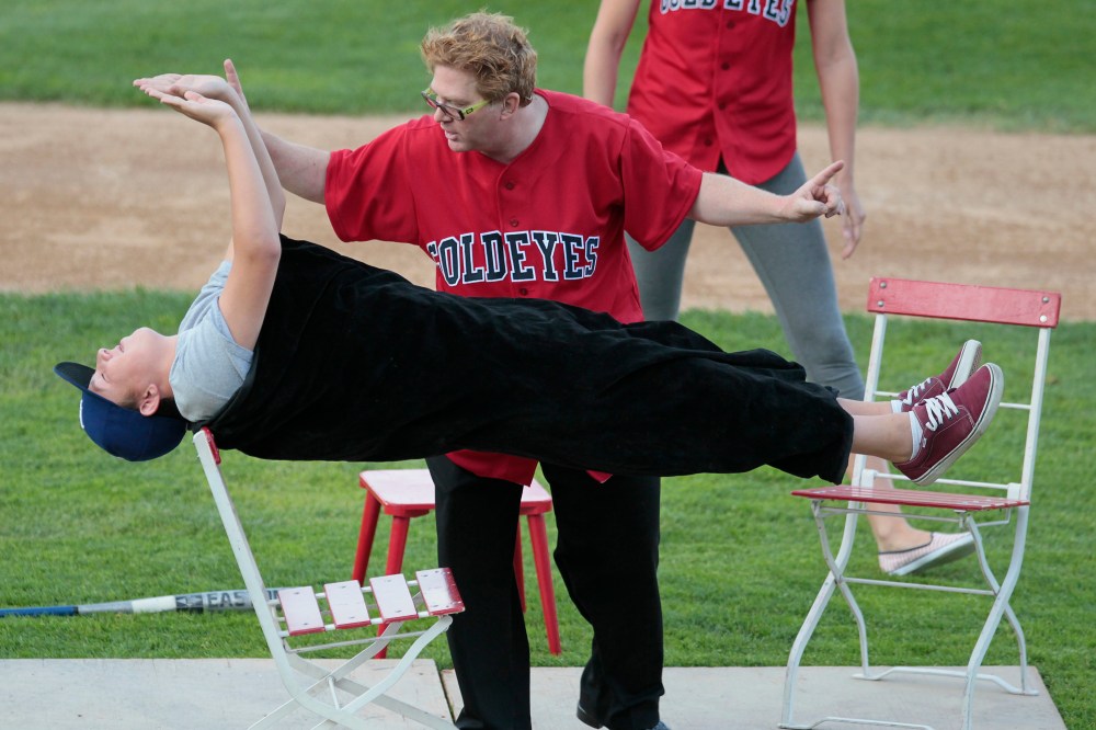 Illusionist Brian Glow performs at the Goldeyes All-Stars Skills Competition at Shaw Park on Monday.