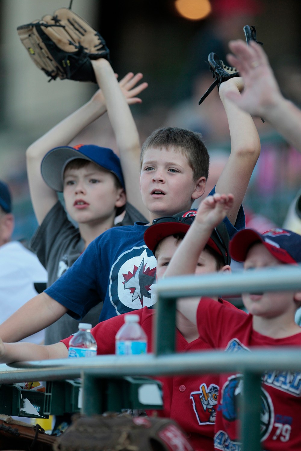 John Woods / Winnipeg Free Press Young fans reach up for a popped ball during Monday's All-Star Skills Competition.