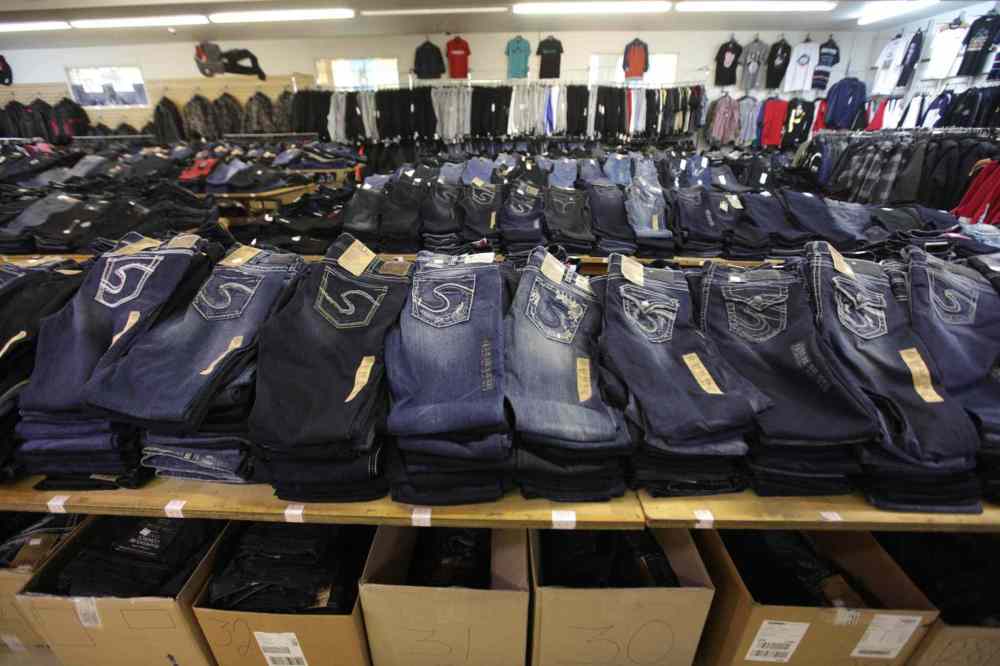 Long piles of high-end jeans line the Sargent Blue Jean store, located at 1136 Sargent Ave.