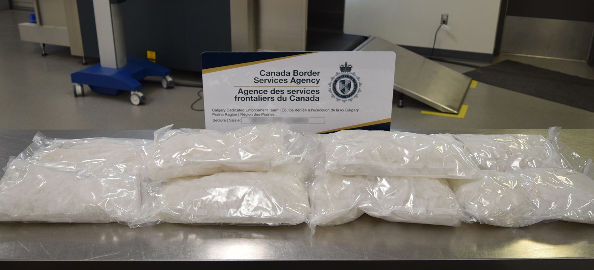Canada Border Services Agency officers in Calgary found about 30 kilograms of methamphetamine in luggage bound for Japan on June 23.