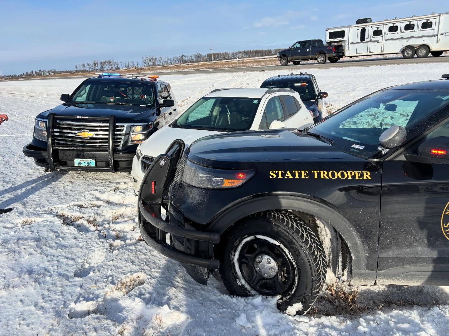 U.S. Border Patrol alerted police, who pursued the southbound vehicle to the Grand Forks area, where troopers put a spike strip across the highway to deflate its tires.