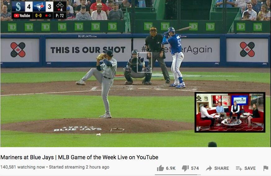 The view from Deep Left Field on the YouTube broadcast of the Blue Jays’ 9-7 extra-inning loss to the Mariners on Wednesday: