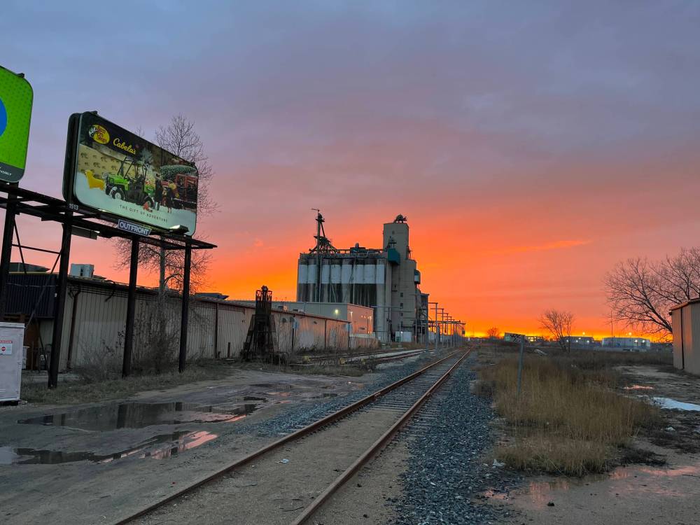 I was just past Portage la Prairie when the grey cloud pulled away from above me, and suddenly the angled sun was lighting a three-bar backdrop horizon. The colours: one bar, a pink-orange you might call salmon, if the pink was not so delicately opaque and the orange not so, well … powdery. Almost granular. The translucent solution chemists call a suspension.
