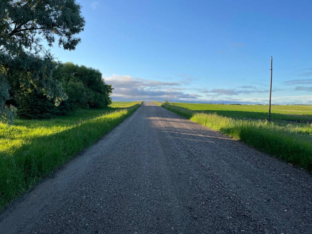 The road is hardpack with gravel, round stones hint at the hard work of oceans and tides, not this expanse of prairie.